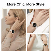 Un Smartwatch diseñado para mujeres, con llamadas inalámbricas (sin enchufe) y notificaciones de mensajes para el seguimiento del fitness, el monitoreo del ciclo de sueño y el seguimiento del ciclo menstrual. Tiene un pantalla táctil HD de 3.35cm y sirve como un reloj deportivo multifuncional.